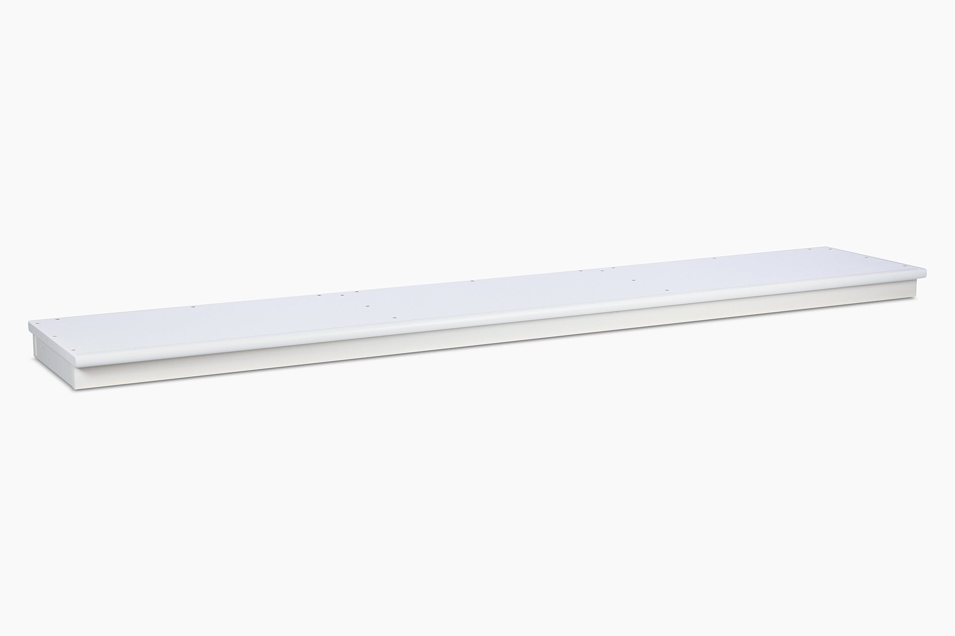 Vitriini-pohja kapea 180 cm + sokkeli -tuote sisältää kannen, jossa on reikiä sekä liuku-urat kannen yläpuolella. Kannen alle asennetaan sokkeli.