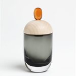 Lyyli boxes combine the qualities of a decorative object and a storage object into a beautiful, whole with a cute little personalities. Each Lyyli box has gone through the hands of four artisans to achieve its unique look. Its glass is blown in Riihimäki. The wood is felled in Joensuu, where it is also individually turned to fit the blown glass. The Lyyli box is crowned with a small glass knob, which adds a playful touch. Lyyli boxes play with shape and colour, while matt-finished wood and glossy glass create a nuanced play with light. The box is perfect to fill with jewellery, pastilles, little treats or your own treasures.